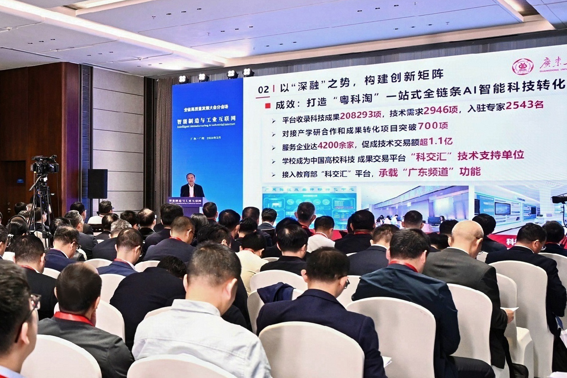 2月24日农历丙午马年开工第一天,省委、省政府召开全省高质量发展大会,聚焦制造业与服务业协同发展这一主题,深化研讨在更高水平上推进高质量发展,更好带动广东“十五五”开好局、起好步。广东工业大学党委书记白建刚在省主会场出席会议,并在“‘百千万工程’县域产业融合与高质量发展”分会场作专题发言;校长邱学青出席“智能制造与工业互联网”分会场并作专题发言;副校长余林,党委常委、副校长鲁仁全分别出席“产业融合与政策创新”与“科技与金融创新赋能产业融合”分会场。学校通过多维度参与,充分展现在服务国家重大战略和区域经济社会发展中的积极作为与显著成效,为推动产业结构优化升级、激活高质量发展新动能贡献广工智慧。