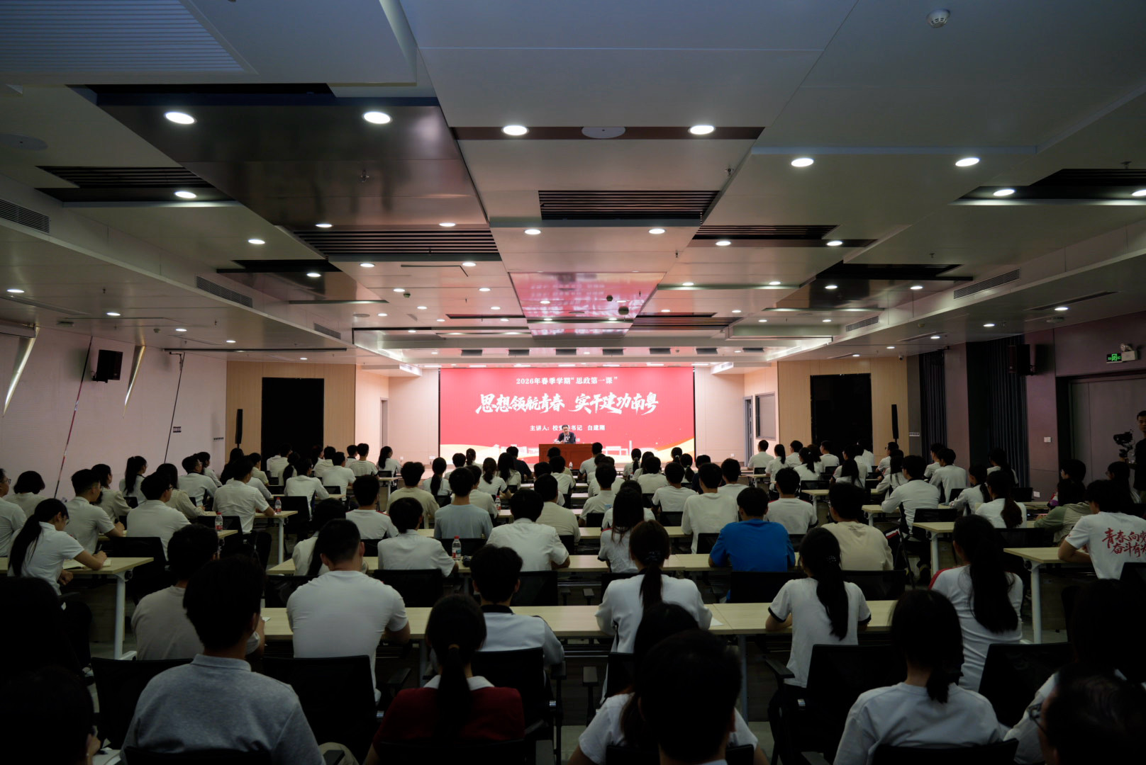 整场授课政治站位高远,是一堂兼具思想深度、时代热度与情感温度的思政大课。同学们深受鼓舞、倍感振奋,纷纷表示更加深刻理解了习近平新时代中国特色社会主义思想的实践伟力,更加清晰认识了“十五五”新征程上的青年使命,必将牢记嘱托、挺膺担当,在强国建设、民族复兴的伟大征程中书写青春答卷。