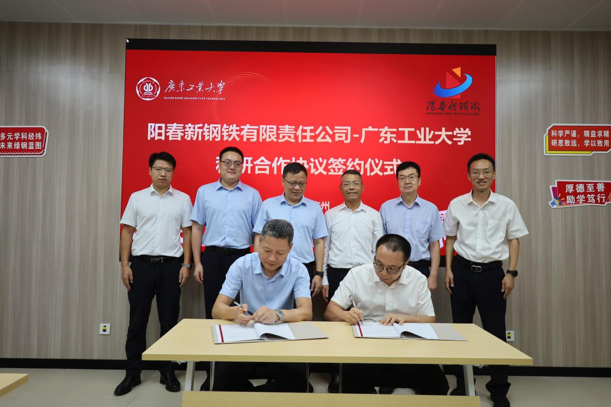 在与会代表的共同见证下,广东工业大学与阳春新钢铁有限责任公司正式签署科研合作协议。仪式结束后,双方举行了科研合作座谈会,就下一步科技合作的具体需求和路径进行了探讨。