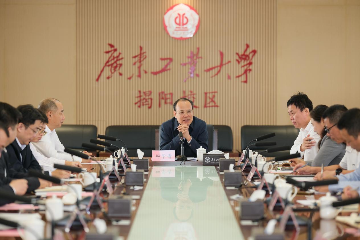 在揭阳校区学生第二党支部专题学习活动中,邱学青与学生共同学习习近平总书记视察广东和出席第十五届全国运动会开幕式重要讲话重要指示精神、党的二十届四中全会精神,并听取支部服务“百千万工程”情况汇报。他充分肯定学生党员投身社会实践、服务地方发展的成效,并对同学们提出殷切期望。一要坚定理想信念,勇担时代使命,自觉坚持党的领导,不忘初心、牢记使命,践行“我将无我,不负人民”的奉献精神,始终将人民利益放在首位,为区域发展和国家建设贡献青春力量。二要锤炼过硬本领,做到全面发展,珍惜学习时光,夯实专业基础,积极投身社会实践,在读万卷书中增长智慧,在行万里路中锤炼担当,续写“把论文写在祖国大地上”的广工故事。三要传承优良传统,矢志接续奋斗,积极总结服务“百千万工程”经验,主动接好学校服务地方发展的“接力棒”,用实干展现新时代青年的硬核担当。
