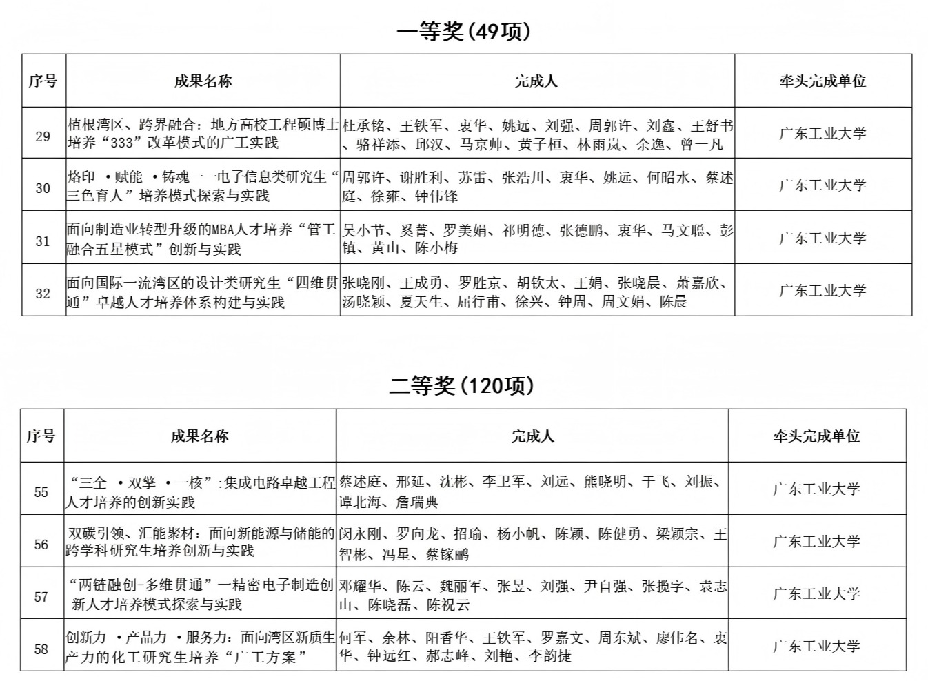 2025年全省学校优秀教学成果奖(高等教育-研究生类)获奖成果名单(广东工业大学)