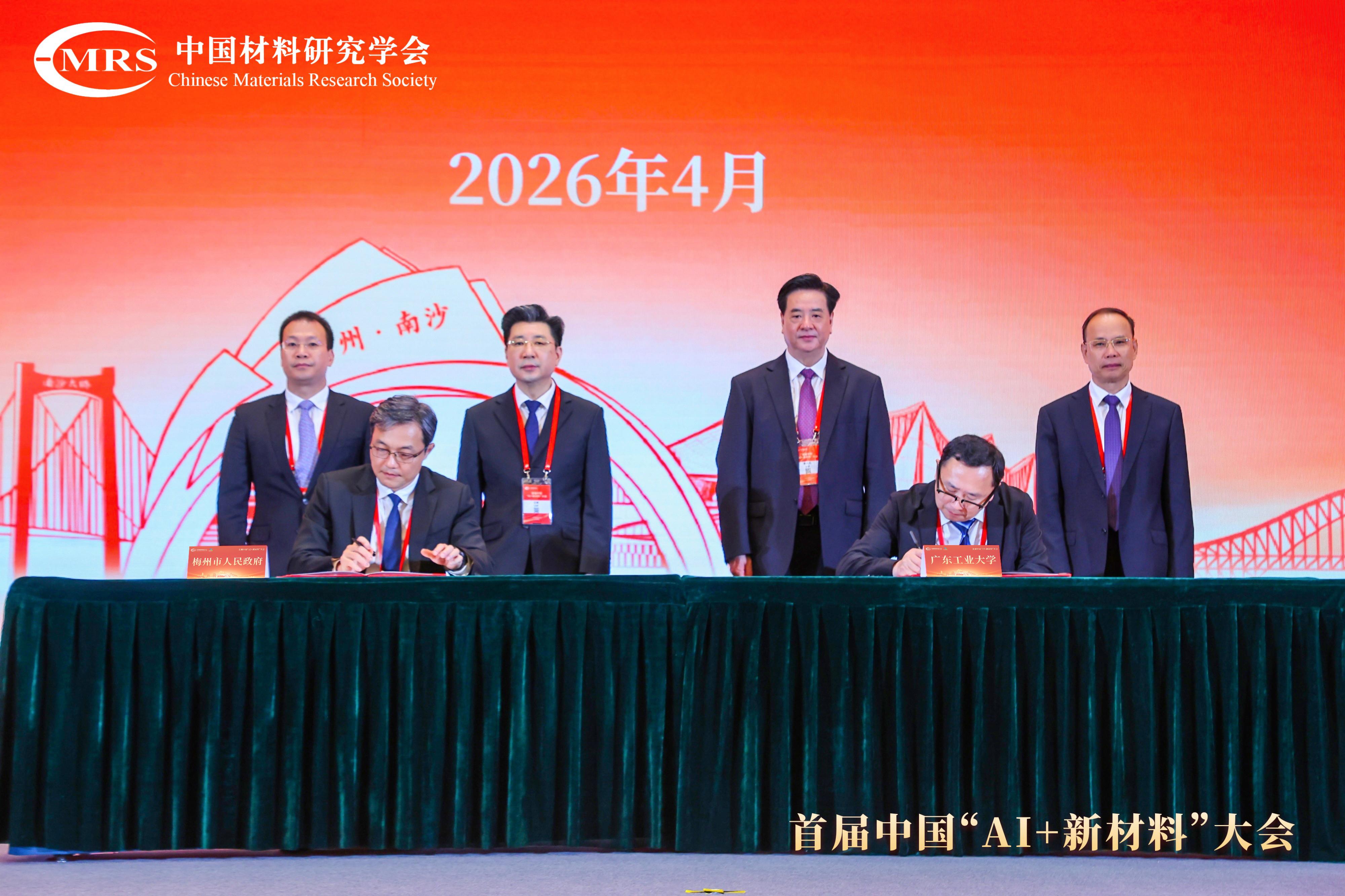 4月10日,首届中国“AI+新材料”大会在广州南沙开幕,广东工业大学与梅州市政府在现场签署战略合作协议。