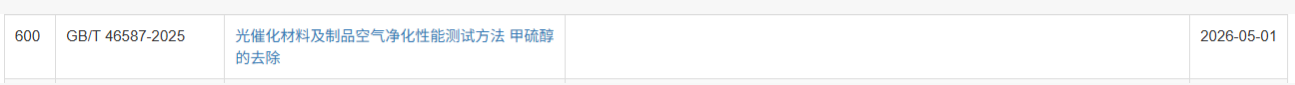 近日,国家市场监督管理总局(国家标准化管理委员会)发布2025年第29号国家标准公告,正式批准发布由广东工业大学牵头起草的《光催化材料及制品空气净化性能测试方法 甲醛的去除》(GB/T 46580-2025)和《光催化材料及制品空气净化性能测试方法 甲硫醇的去除》(GBIT 46587-2025)两项国家标准。这两项标准是光催化材料空气净化性能检测领域的重要规范,为相关产品的质量评价和产业健康发展提供了关键技术依据。