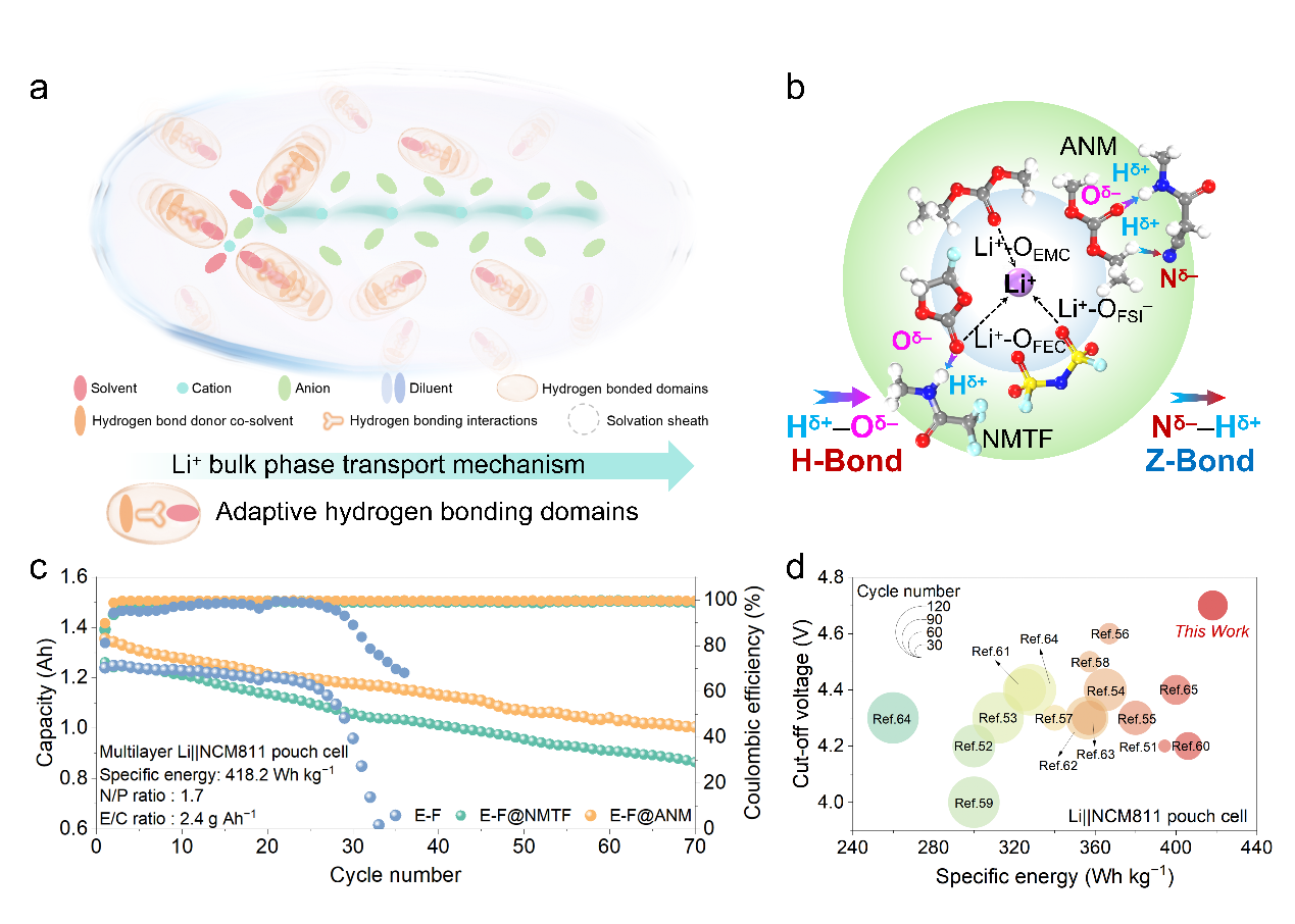 该研究为高比能锂金属电池的电解液开发提供了一种全新的设计范式。通过调控分子间氢键相互作用来精准优化溶剂化化学和界面工程,不仅阐明了“自适应氢键域”在提升电池耐高压及抗氧化性能中的关键机制,也为未来开发高能量密度、长寿命的下一代储能系统提供了重要的理论依据和可行的技术路径。