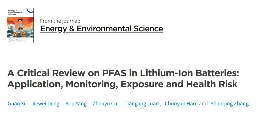 锂离子电池产业正在推动全球清洁能源转型,但其背后的环境代价,特别是新兴污染物的潜在威胁,已成为关乎产业绿色发展的核心议题。近日,我校郝春雁/栾天罡教授团队联合张山青教授团队,以“A Critical Review on PFAS in Lithium-Ion Batteries: Application, Monitoring, Exposure and Health Risk”为题,在国际环境与能源领域的顶级期刊《Energy & Environmental Science》(五年平均影响因子:35.1,中科院一区TOP期刊)发表重要综述论文。系统总结了全氟和多氟烷基物质(PFAS)在锂离子电池生产与应用过程中的功能作用、环境释放途径、检测方法及其潜在暴露风险与相关毒性。广东工业大学生物医药学院为论文第一完成单位,席冠副教授为论文第一作者,郝春雁教授为论文唯一通讯作者。