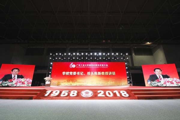 11月10日,广东工业大学建校60周年庆祝大会在学校大学城校区体育馆隆重举行。约四千名师生校友、各界嘉宾参加了庆祝大会。