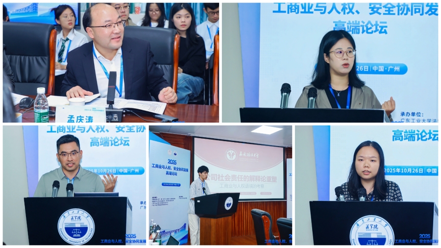 2025年10月26日,由中国政法大学“一带一路”人才培养与法律研究院、中国政法大学人权研究院(当代法治研究院)、广东工业大学人权法治研究中心、广东工业大学国家安全研究中心主办,广东工业大学法学院承办的“2025年工商业与人权、安全协同发展高端论坛”在广东工业大学法学院成功举办。来自中国政法大学、奥斯陆大学、香港中文大学(深圳)、澳门大学、中国人民大学、复旦大学、南开大学、西北大学、兰州大学、西北政法大学、西南政法大学、云南大学、首都经济贸易大学、上海海事大学、浙江理工大学、湖北经济学院、汕头大学、广州大学、广州航海学院等高校的超过80位专家学者和广东工业大学法学院师生齐聚一堂,围绕工商业与人权教育教学、企业人权尽责、国际合规标准及安全、科技协同发展等方面进行了深入探讨。
