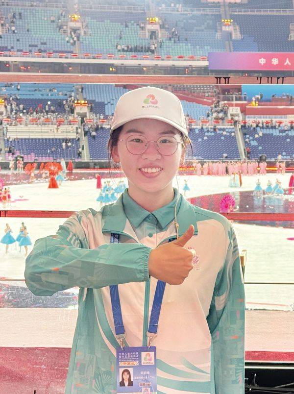 当我在十五运会开幕式看台上亲眼见证国旗升起、万人同庆的盛景时,内心盈满了震撼与自豪,这一刻,所有的付出都得到了最盛大的回报。能作为志愿者参与这场粤港澳大湾区的盛会,我感触良多。尽管观众们是来自五湖四海的陌生人,每次交流都是简短的指引,但他们总是十分友善地微笑着,让我感觉不仅是我在为大家服务,观众们也在给予我热情和力量。