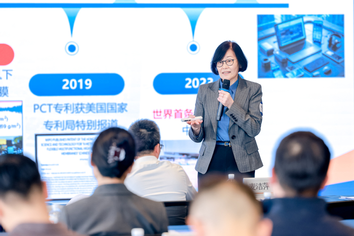主题分享环节,香港科技大学(广州)功能枢纽先进材料学域主任高平教授在题为《超高分子量聚乙烯纳米膜的开发与应用》报告中指出,新材料是全新物质发现或已知物质经结构重构实现性能跃升,且需实现应用领域零到一突破的物质。2017年其团队研制出厚度仅20纳米的二维单层网状纳米膜,解决传统材料滑移问题,兼具多孔稳定、强韧耐折等特性。在南沙、广州政府支持下,该材料2020年实现透明防菌防毒口罩膜产业化,目前已落地华为等龙头企业。