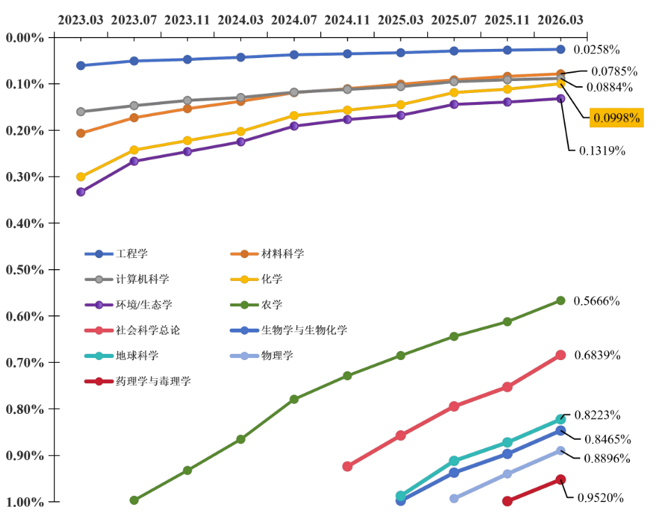 2023.03-2026.03学校ESI学科排位上升趋势
