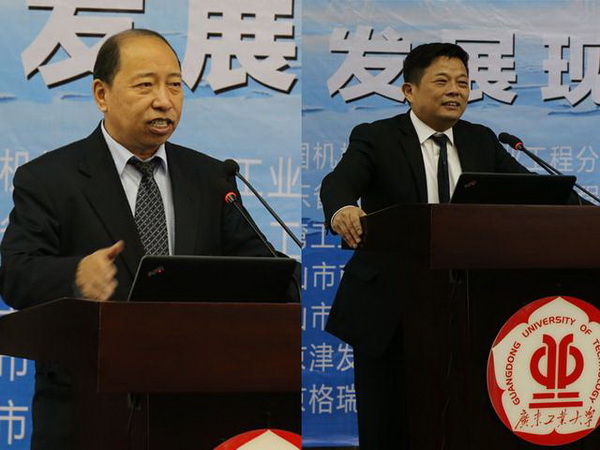 论坛主席齐二石(左)与广东工业大学校长陈新(右)分别致欢迎词