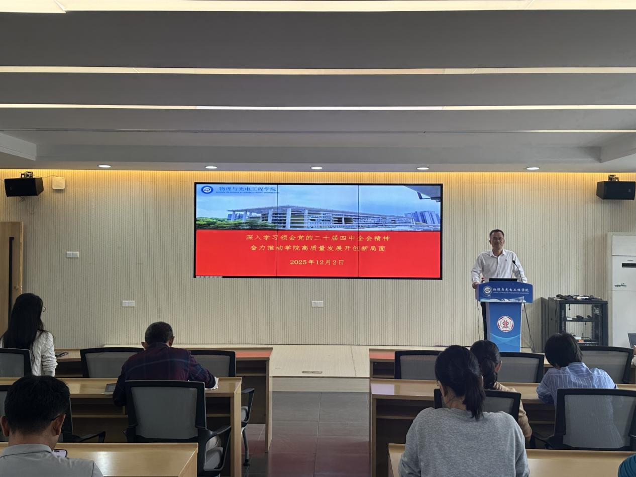 为引导全体教职工党员深入学习贯彻党的二十届四中全会精神,切实将理论学习成效转化为推动学院改革发展的强大动力,12月2日下午,学院党委书记蓝锐彬于大学城校区实验四号楼202会议室讲授学习贯彻党的二十届四中全会精神专题党课,学院全体教职工党员参加。