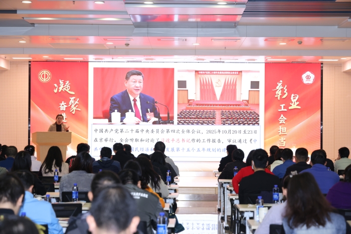 为深入学习贯彻党的二十届四中全会精神,进一步提升工会干部的政治素养和履职能力,1月13日上午,校工会在大学城校区文化活动中心青春报告厅组织开展专题学习,特邀广东省委党校吕艳红教授作题为《全面开创中国式现代化建设新局面——党的二十届四中全会精神解读》的辅导报告。报告会由工会常务副主席邓俊主持,全校二级工会干部160余人参加学习。